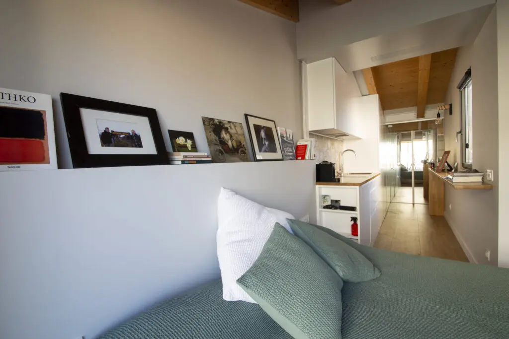 Cuenta con una confortable cama de 1,80 de ancho, armarios, amplio baño con ducha y moderna kitchenette con electrodomésticos.