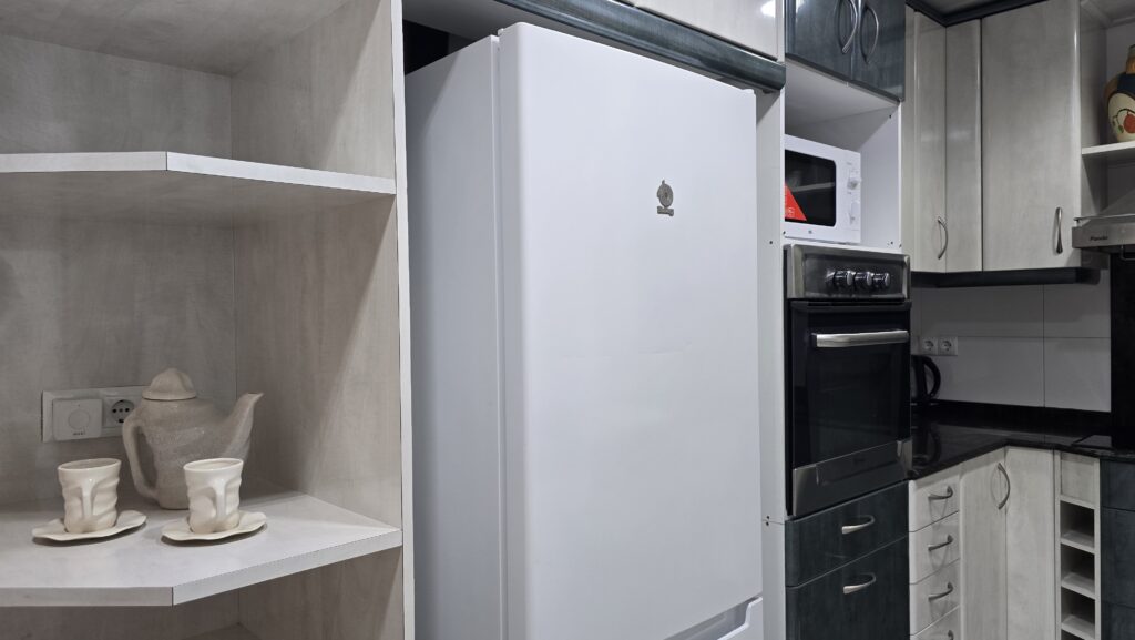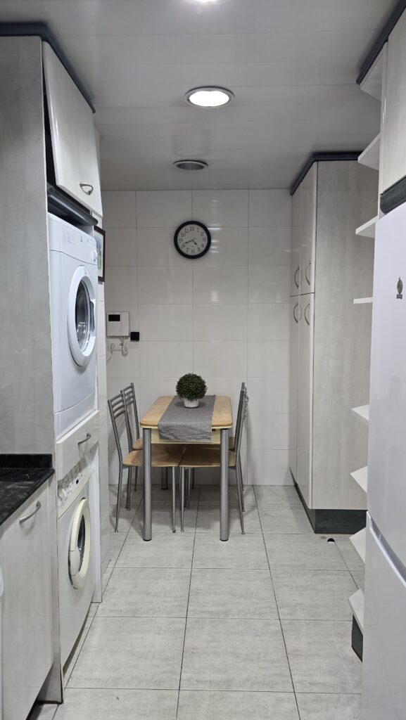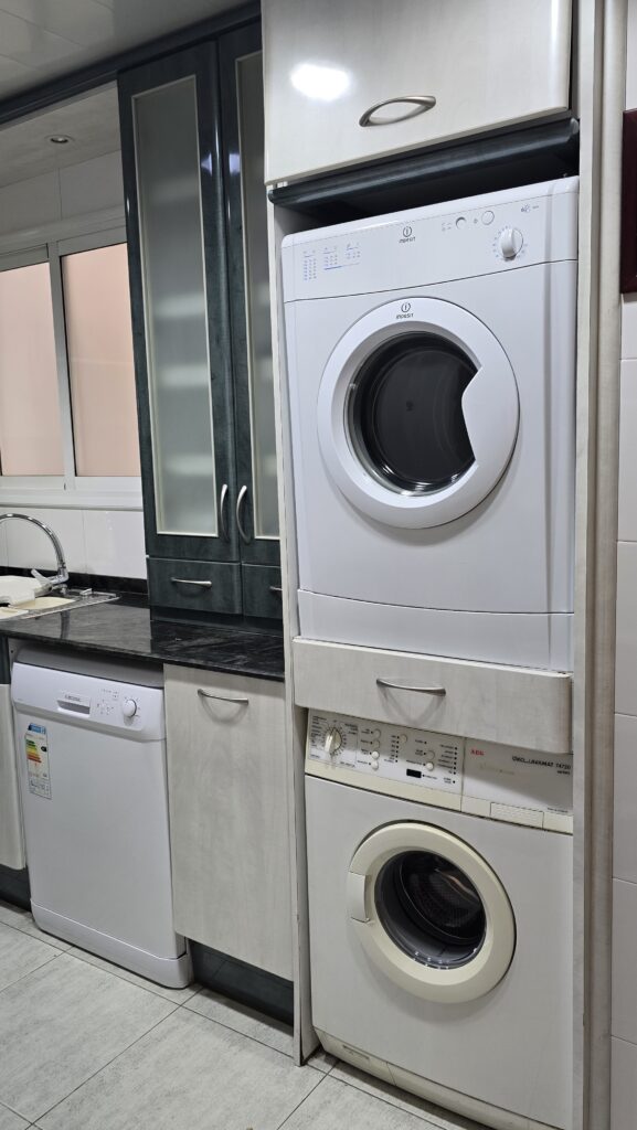 Parquet floors, wardrobes in all rooms, fully equipped kitchen (fridge, washing machine, dryer, dishwasher, ceramic hob, oven, microwave, coffee maker, toaster, etc.). AACC in living-dining room and double bedroom. Two balconies.