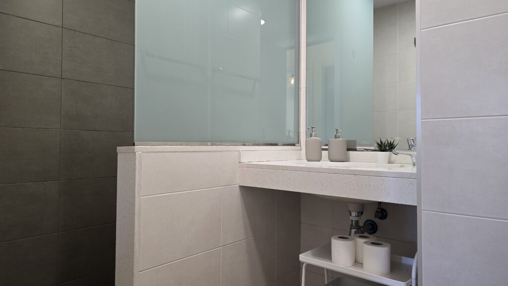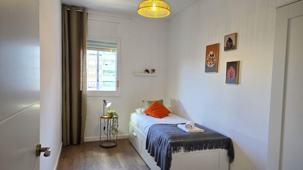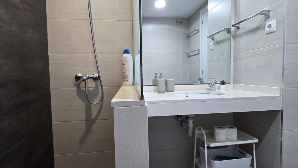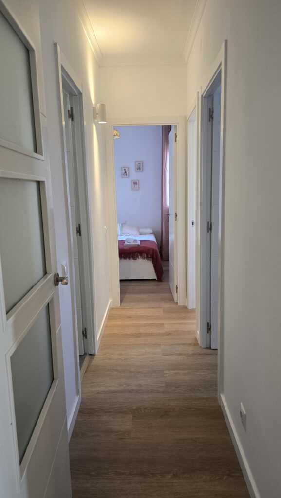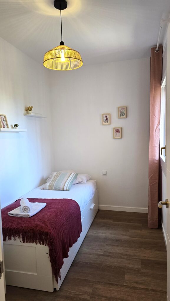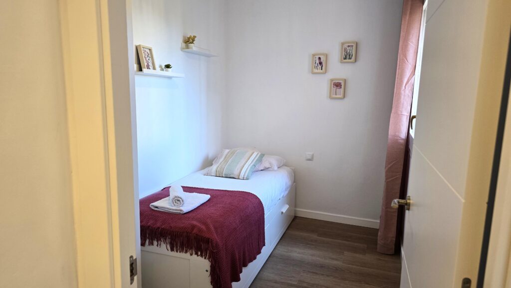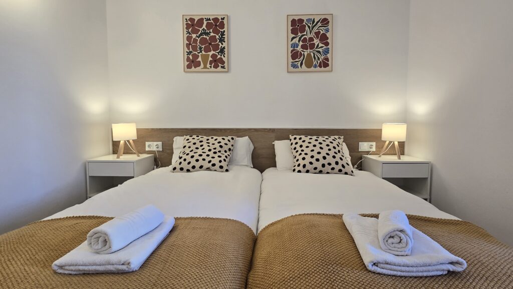It consists of four bedrooms, three of them single with a 0.90 bed and one double with two single beds. Two full bathrooms with shower.