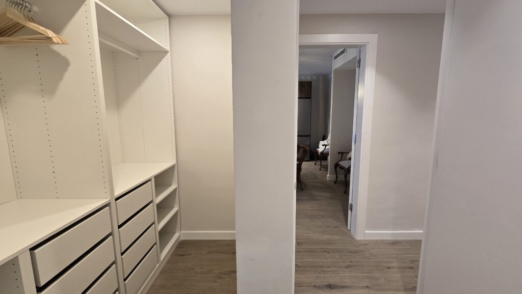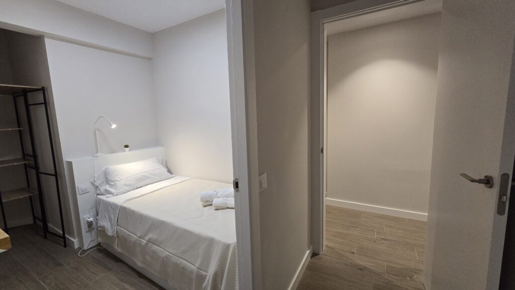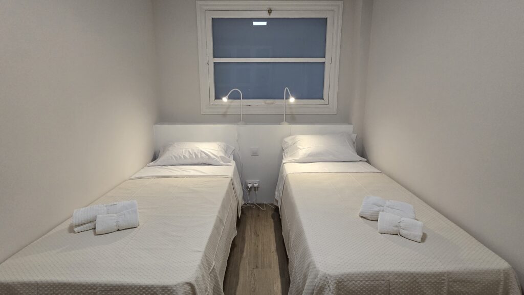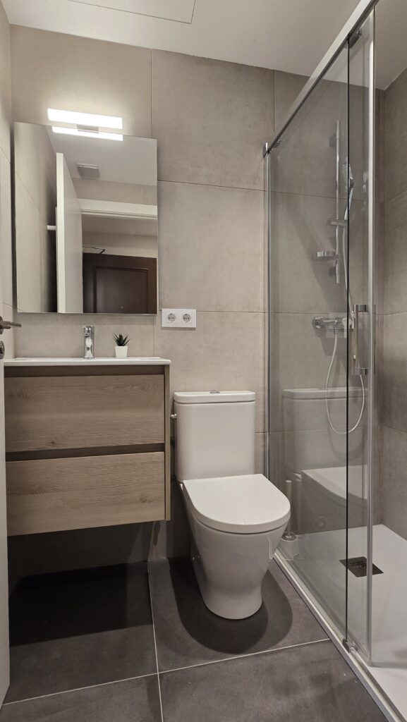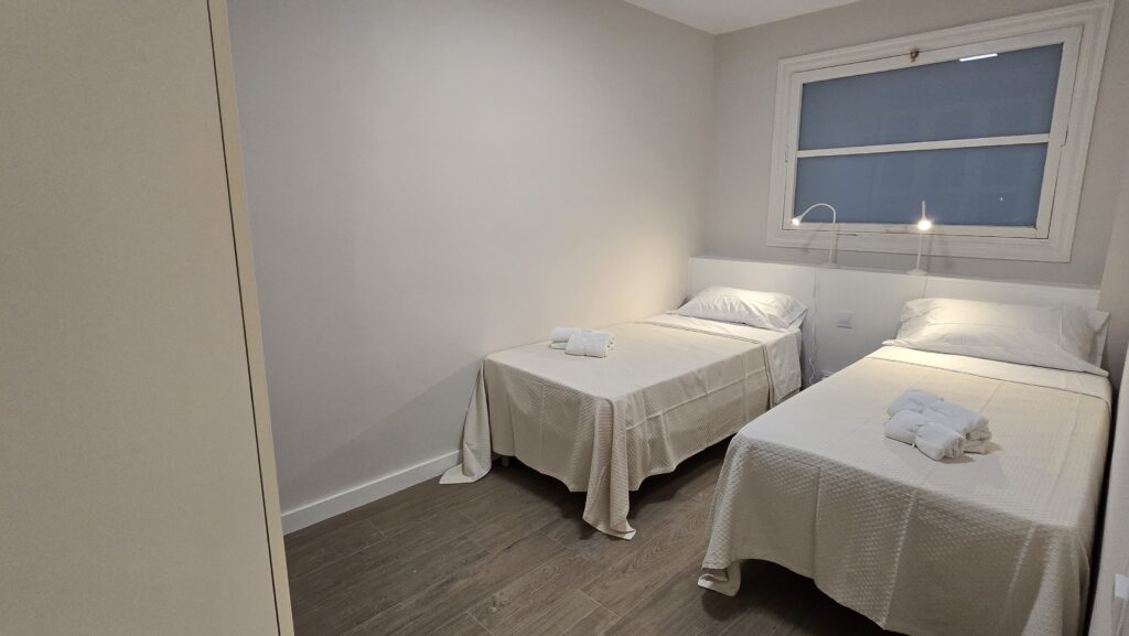 With three spacious bedrooms, a master bedroom with an en-suite bathroom and walk-in closet, a second double bedroom adaptable to your needs (either with two beds or a bed and study area), and a third single bedroom perfect for working or relaxing. The common areas flow into a bright living-dining room with exterior views, integrating an open kitchen with high-end appliances including a refrigerator, dishwasher, oven, microwave, toaster, and coffee maker, all accompanied by top-quality tableware and kitchen utensils.