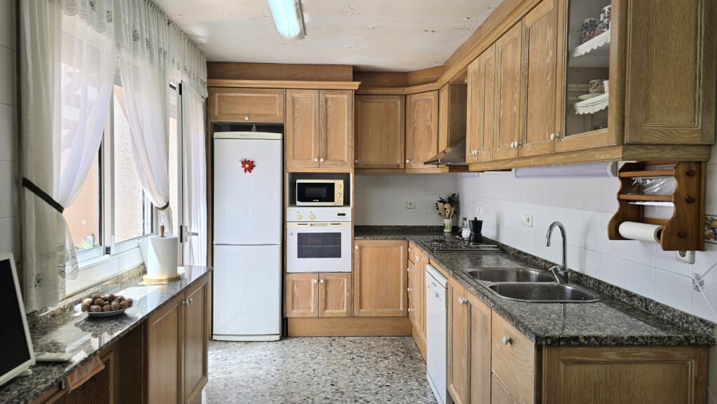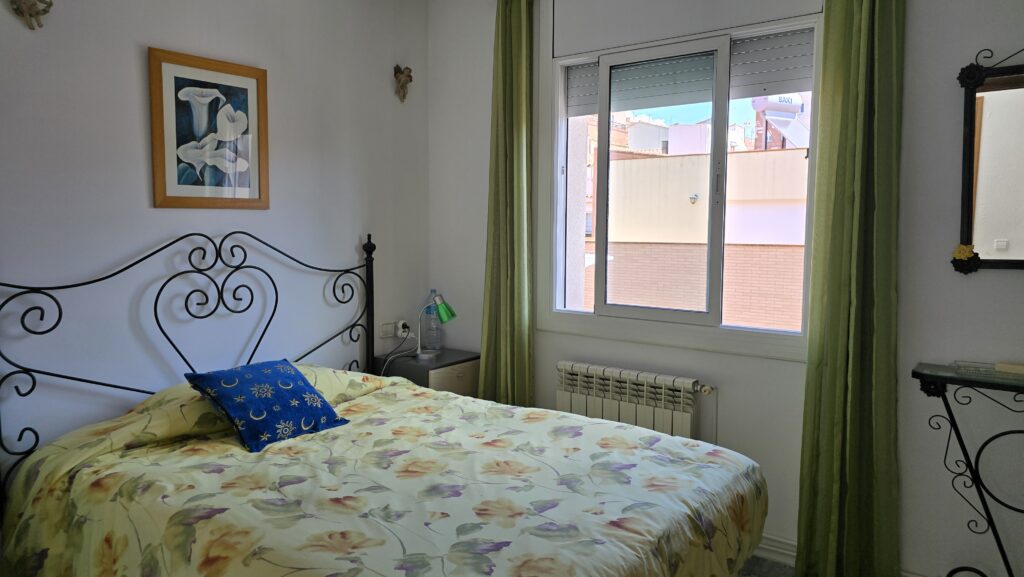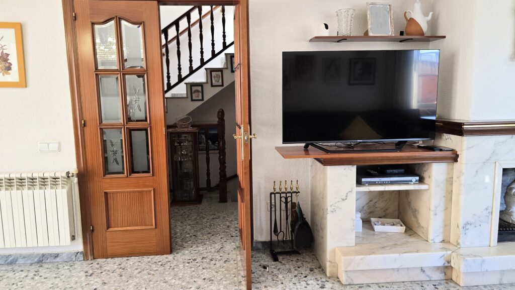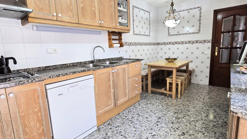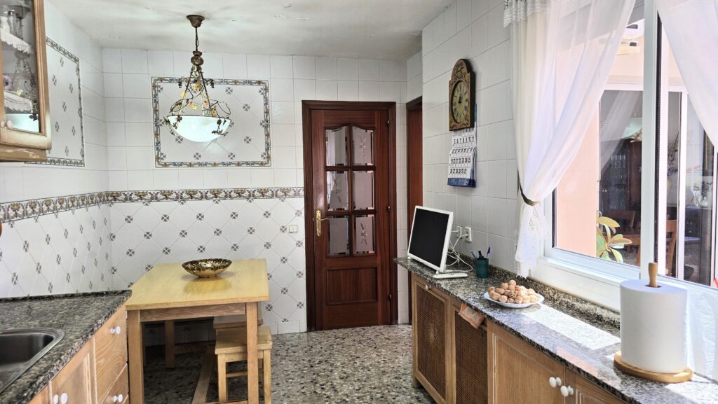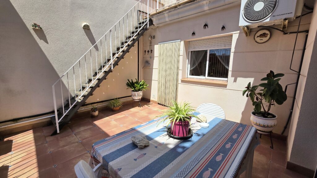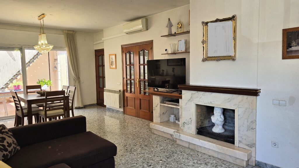 Premier étage : séjour spacieux et lumineux avec cheminée et accès au patio. Grande cuisine également extérieure et avec accès au patio, salle de bain complète avec douche et 1 chambre.