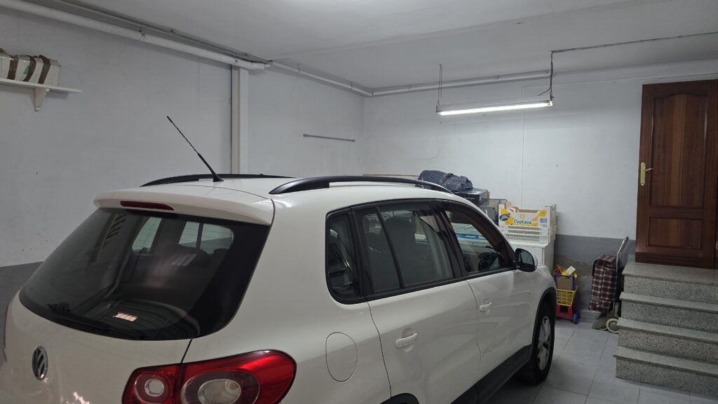 Rez-de-chaussée : Distributeur avec accès direct à un garage privé pour une voiture et au local commercial.