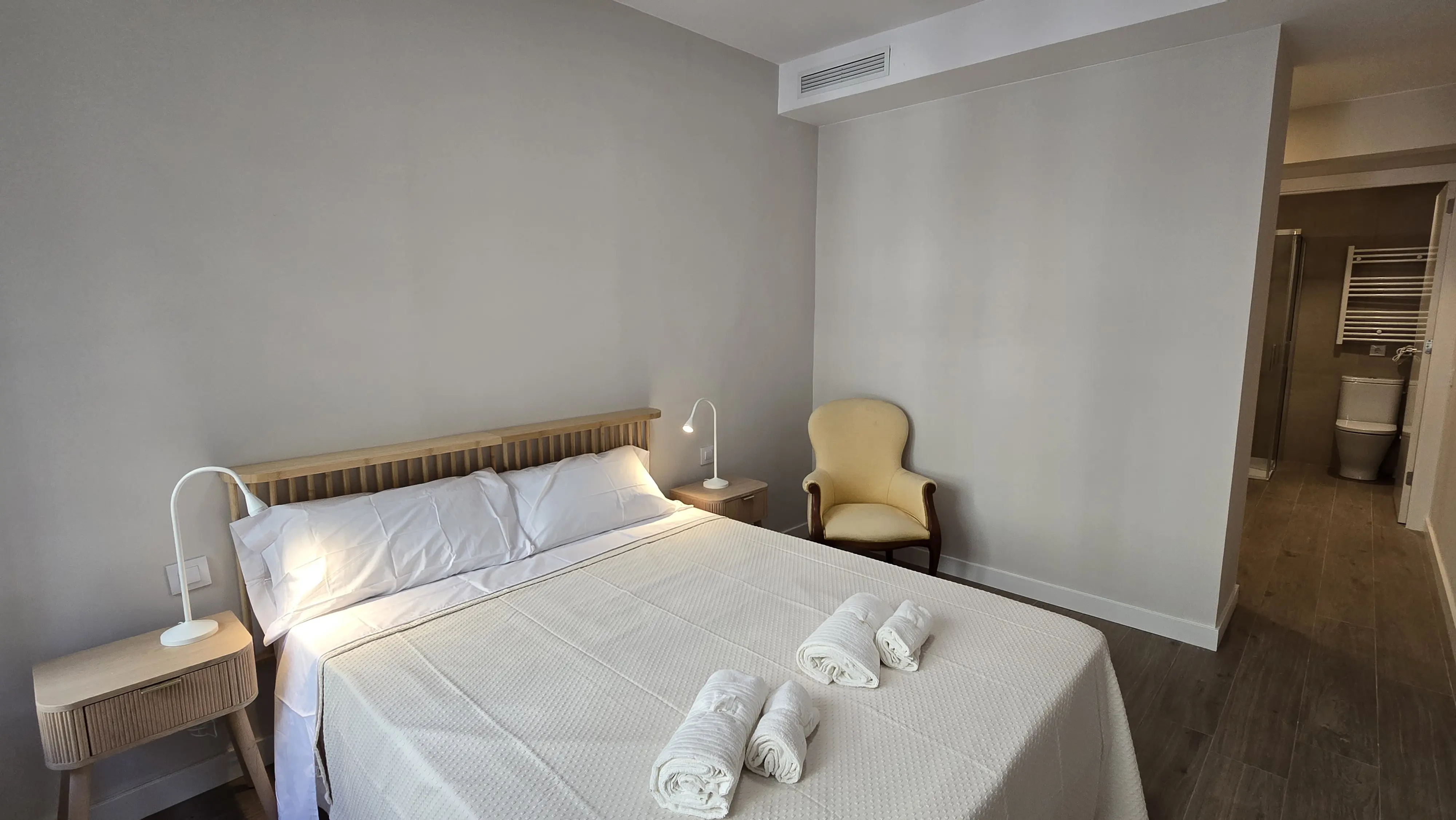 Il comprend trois chambres spacieuses : une suite parentale avec salle de bain attenante et dressing, une deuxième chambre double modulable selon vos besoins (avec deux lits ou un lit et un coin bureau), et une troisième chambre simple idéale pour travailler ou se détendre. Les espaces communs s'ouvrent sur un lumineux salon-salle à manger avec vue sur l'extérieur, intégrant une cuisine ouverte équipée d'appareils électroménagers haut de gamme (réfrigérateur, lave-vaisselle, four, micro-ondes, grille-pain et cafetière), le tout accompagné d'une vaisselle et d'ustensiles de cuisine haut de gamme.